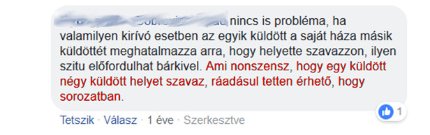 Korábbi írásban már beidézésre került tőle, hogy szó nélkül hagyta a szabálytalan küldöttgyűlési szavazást.