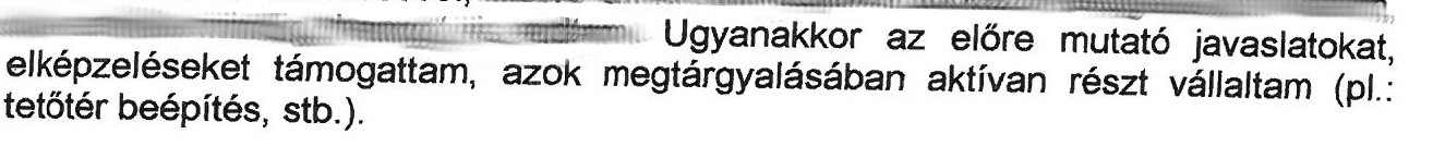 Motivációs levelében olvasható a szövetkezet területén végzett, egyetlen megnevezett munkája, mint referencia(?) a tetőtér beépítéséé. -Ezzel csak egy gondom van, hogy tudtommal abból nem lett semmi.