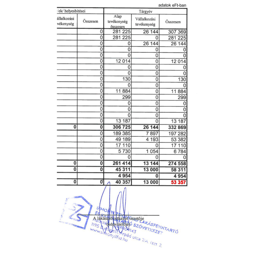 Adott egy, a tulajdonosok felé megosztott beszámoló. Pár oldal és eltűnik 23.516 eFt. Sajnos ez, simonyiéknál megszokott.
